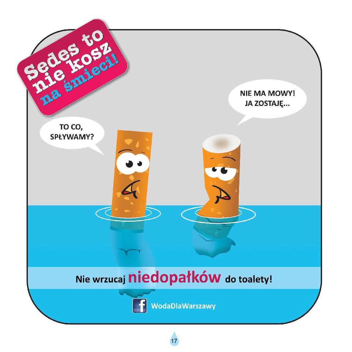 Książeczki zostaną rozdane dzieciom objętym edukacją wczesnoszkolną – na obszarze aglomeracji Skoczów (Gmina Skoczów, Brenna i częściowo Ustroń) w klasach od 1 do 3. Rozdając książeczki będziemy zachęcać wszystkie dzieci oraz ich nauczycieli do odwiedzenia oczyszczalni ścieków w Skoczowie. Dodatkowo książeczki zostaną przekazane do bibliotek (miejskich, szkolnych) oraz przedszkoli. - Naklejki i ulotki „Rysunkowego poradnika użytkownika toalet – Sedes to nie kosz na śmieci” – wydruk i dystrybucja 1000 szt. naklejek oraz 2500 szt. ulotek.